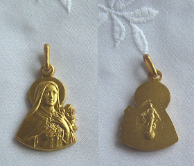 És ma csodálatos ajándék érkezett a Lisieuxi-i Kármelből, egy képeslap és egy érem.