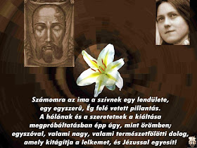 A világ lángokban áll: szeretnéd eloltani? Szemléld a Keresztet: a nyitott Szívből kiomlik a Megváltó vére, vér amely képes a pokol lángjait is eloltani. Fogadalmaid hűséges megélése által szabaddá és nyitottá teszed a szíved; akkor kiáradhatnak abban az isteni szeretet hullámai, túlárad, kicsordul, s termékennyé teszi egészen a föld végső határáig.